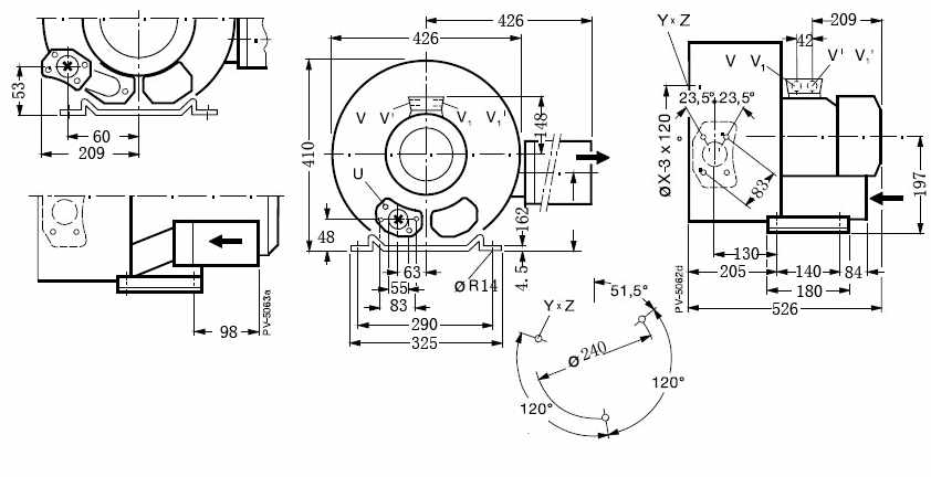 上圖為:4.3kw高壓鼓風(fēng)機平面尺寸圖