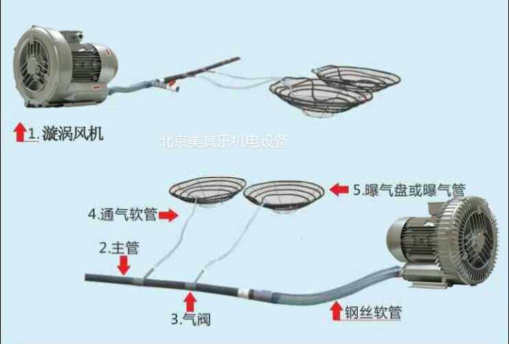 圖為高壓漩渦增氧風(fēng)機(jī)與曝氣裝置連接示意圖