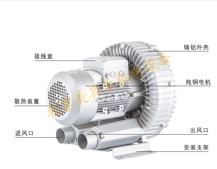 1.機(jī)殼材質(zhì):環(huán)形高壓鼓風(fēng)機(jī)采用超強(qiáng)度壓鑄鋁,壓鑄鋁與奔馳汽車輪毅相同鋁材,相對于普通鋁合金來說,壓鑄鋁更堅固,相對于鐵殼風(fēng)機(jī),更有輕量化的作用。