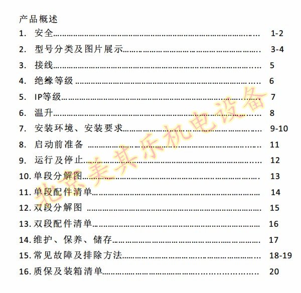漩渦氣泵使用說(shuō)明書(shū)概況目錄如下:
