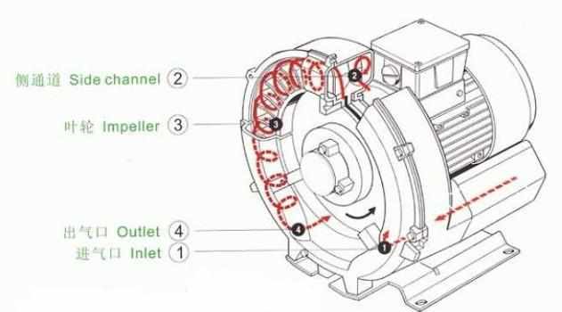 漩渦式氣泵是通過內(nèi)部葉輪的轉(zhuǎn)動(dòng),葉輪四周的葉片與葉片之間會(huì)形成一系列漩渦形狀的氣體,經(jīng)過不斷循環(huán)的增壓,最終經(jīng)由出風(fēng)口排出泵體外,具體工作方式及動(dòng)畫參考:漩渦氣泵原理動(dòng)圖
